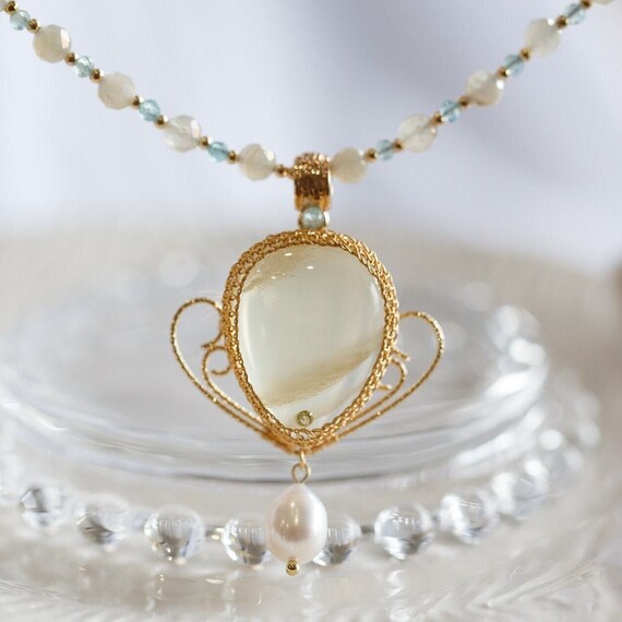 Austyn Natural Prehnite Sunflower Pendant Necklace